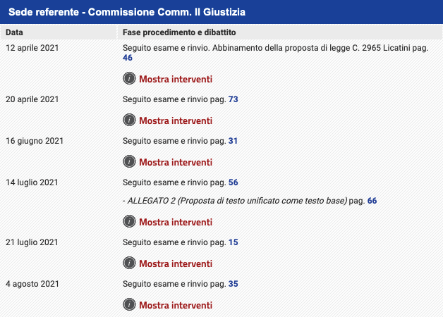 L’iter della Proposta di legge (aggiornato al 21 luglio 2021)